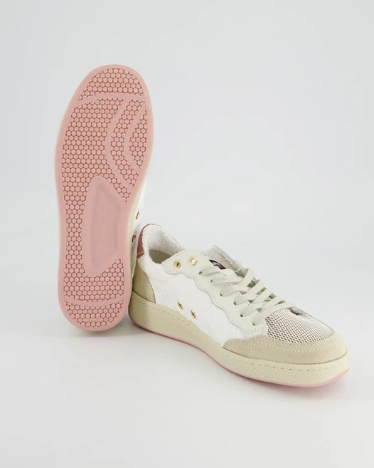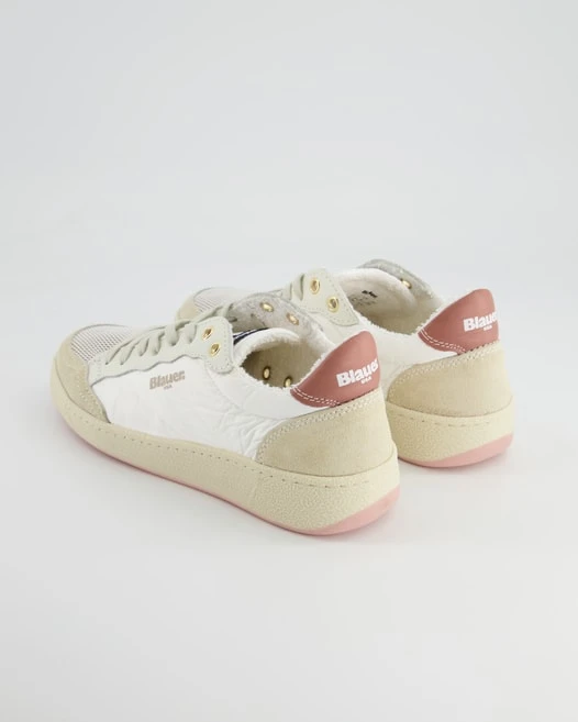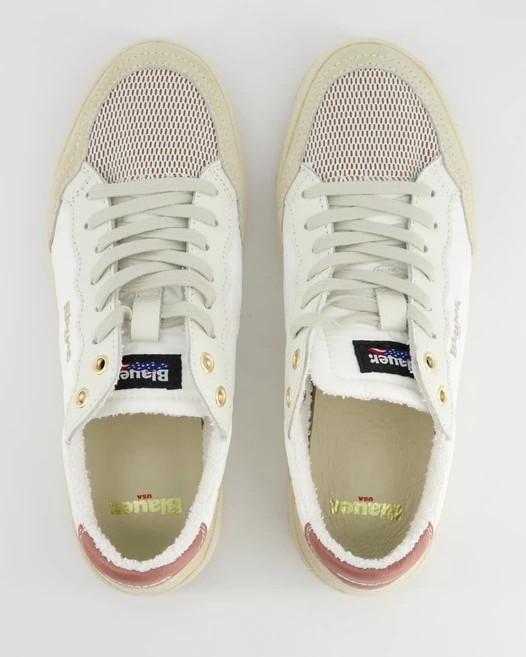 Blauer hat diese Sneaker für Damen kreiert, die Ihnen garantiert gefallen werden. Als Obermaterial werden Textil und Veloursleder verwendet. Das Innenfutter ist aus Textil und Leder. Farblich wurden sie in schickem Weiß gehalten. Dieses Modell hat keinen Absatz.