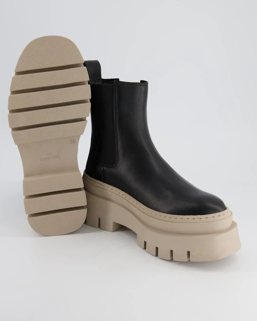 Sie werden diese Chelsea Boots von Copenhagen für Damen lieben! Versprochen! Leder und Textil wurden bei diesem Paar als Obermaterial benutzt. Das Innenfutter besteht ebenfalls aus Leder und Textil. Farblich wurden sie in schickem Schwarz gehalten. Dieses Modell hat keinen Absatz.