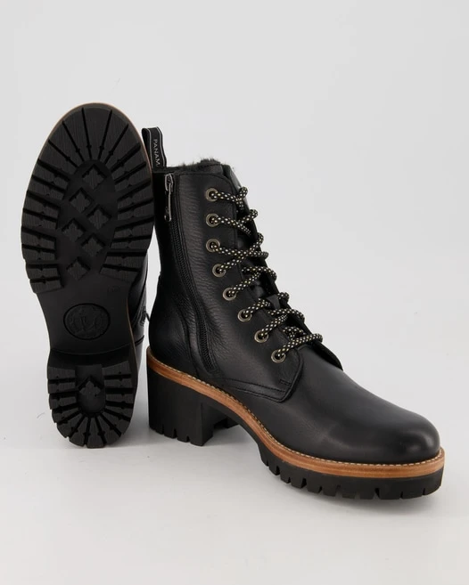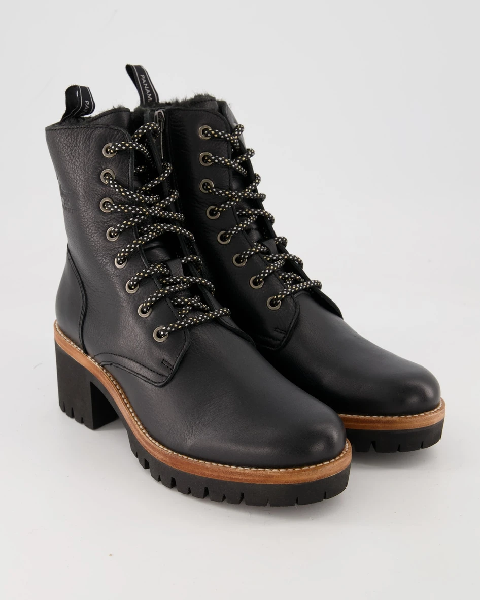 Sie werden diese Schnürstiefeletten von Panama Jack für Damen lieben! Versprochen! Leder dient als Obermaterial, was dieses Paar ausgesprochen atmungsaktiv und resistent macht. Lammfell wurde als Innenmaterial verwendet. Farblich wurden sie in schickem Schwarz gehalten. Mit einem Absatz von 0 bis 30 mm wird das Modell als flach eingestuft.