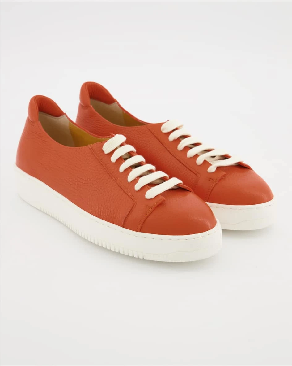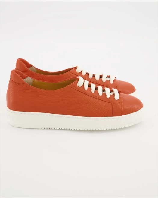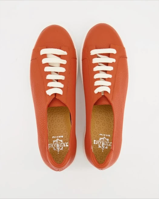 Sie werden diese Sneaker von Trumans für Damen lieben! Versprochen! Als Obermaterial wird Leder verarbeitet, was besonders atmungaktiv und resistent ist. Das Innenfutter ist ebenfalls aus Leder. Ihre Farbe ist schönes Orange. Dieses Modell hat keinen Absatz.