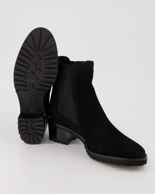 Sie werden diese Chelsea Boots von Trumans für Damen lieben! Versprochen! Leder wurde als Innenmaterial verwendet. Farblich wurden sie in schickem Schwarz gehalten. Dieses Modell verfügt über einen flachen Absatz, der bis 40mm hoch ist.